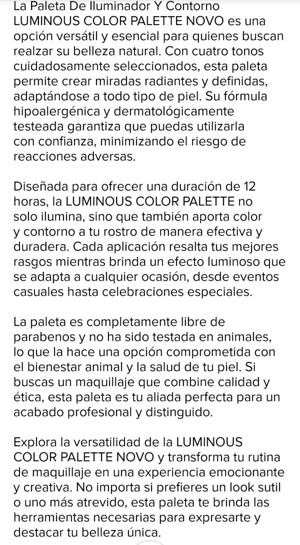 Descripción del producto en las fotos