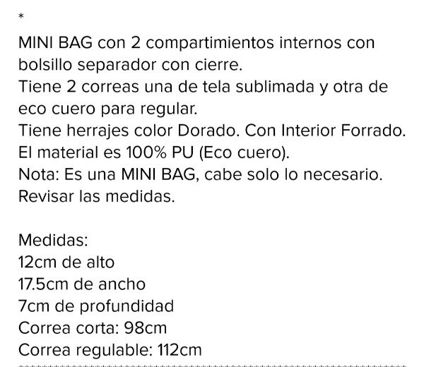 Mini Bag Importada descripción y colores disponibles en las fotos .
