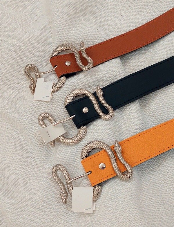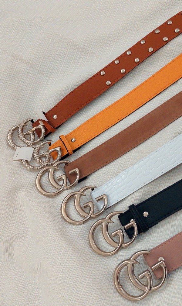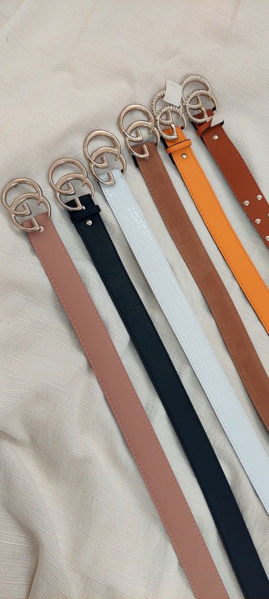 Cintos símil cuero con hebilla de metal diferentes colores .