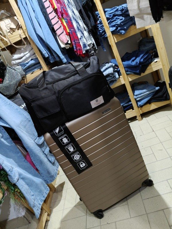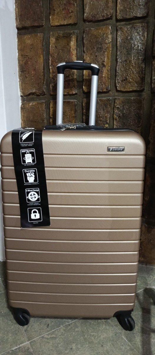 Maleta gde dorada grande carga 23 ks .con 8 ruedas y giro de 360 también trae candado.