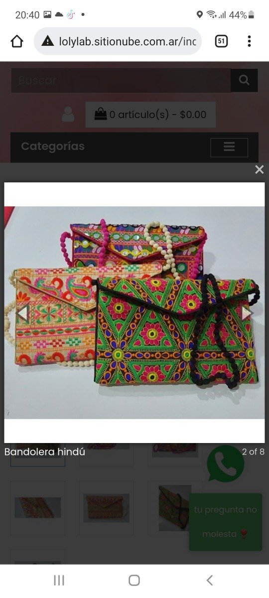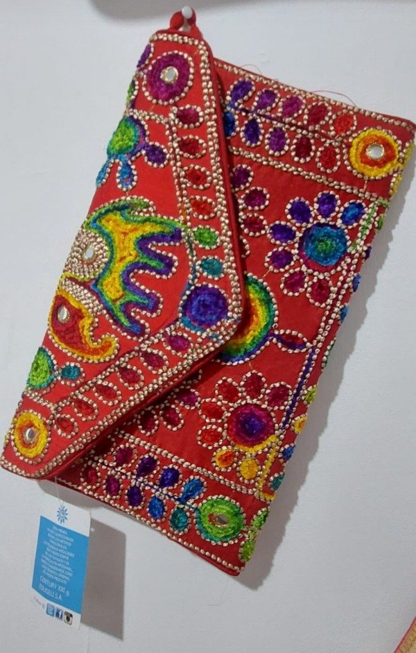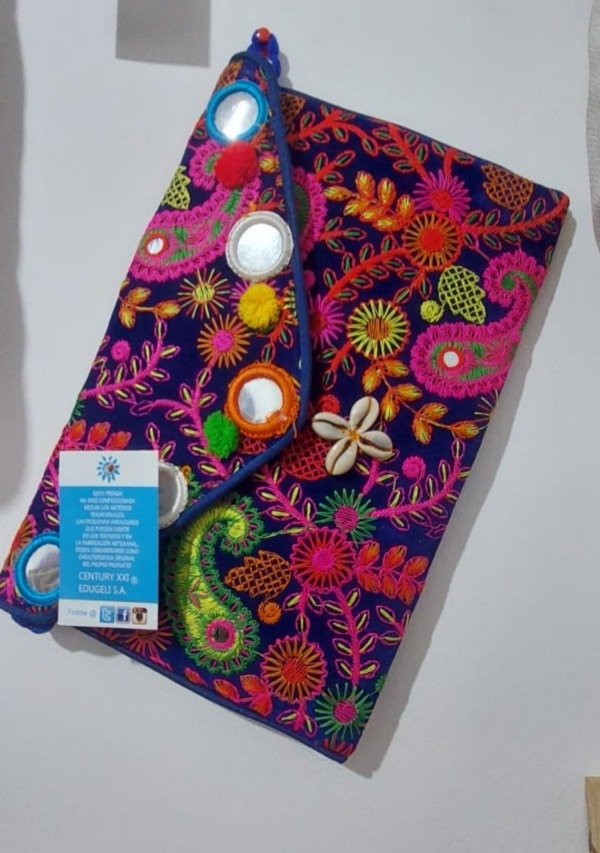 Sobre tipo bandolera importada completamente bordada con compartimento pequeño y grande con cierre .