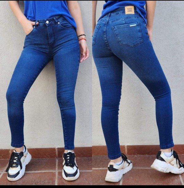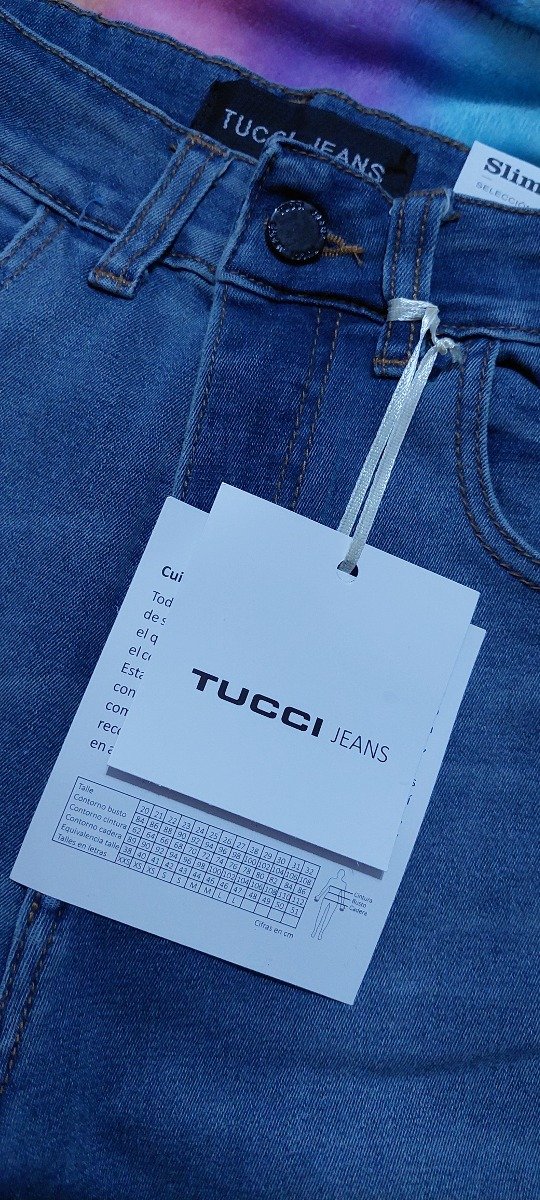 Jeans tucci elastizados chupin con detalle chapita bolsillo .del 36 al 48