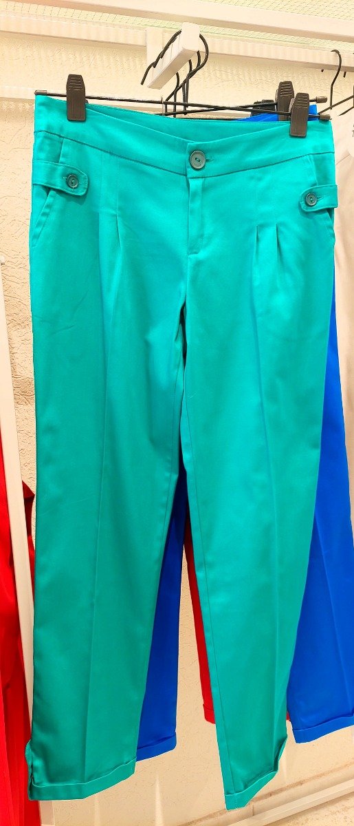 Pantalon al tobillo de algodón satinado ,tiro medio con botamanga colores de las fotos talles del 1 al 5 ..