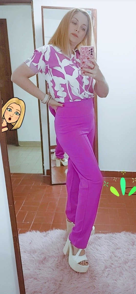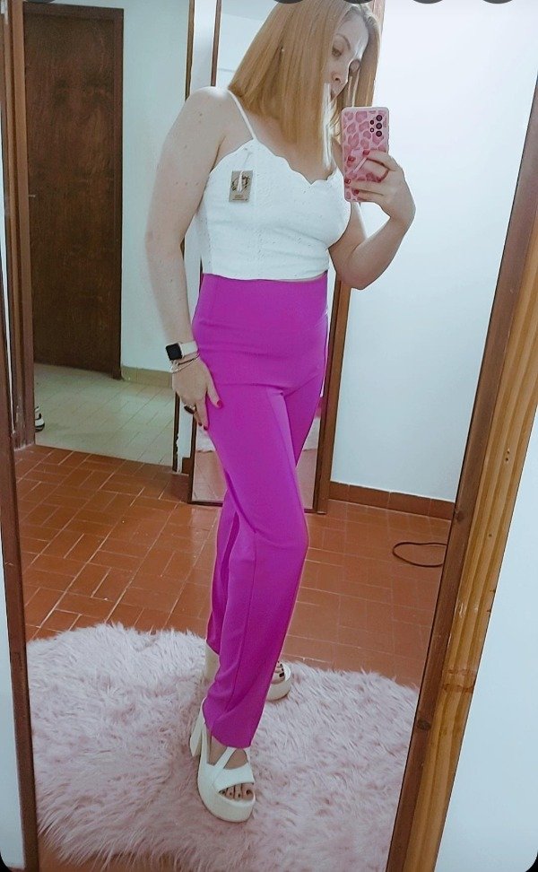 Pantalón Importado cintura alta y ancha tipo faja ,hecho en tela de Crep Nike .Color magenta talles del S al triple XL.Calidad premium