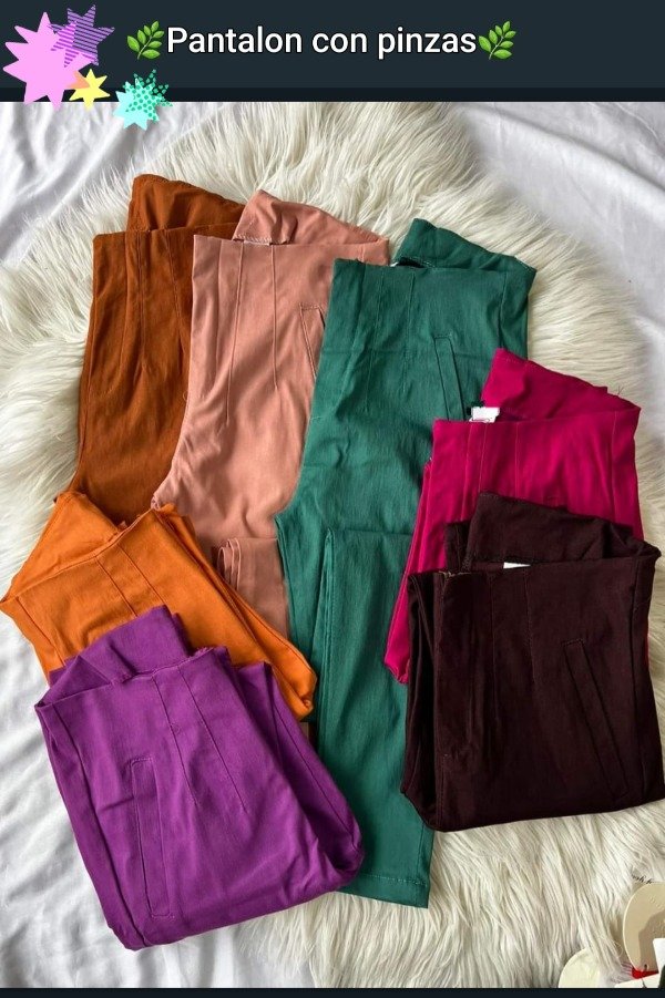 Realizados en Bengalina tiro alto con pinzas, hiper elastizados. Talles del 36 al 44 MUY cumplidos. Colores varios .