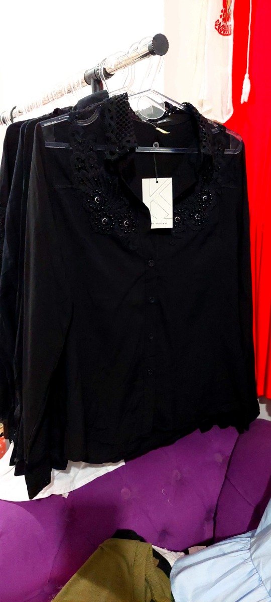 Camisa importada ,bordada con detalles mangas ajustables .marca K lipso