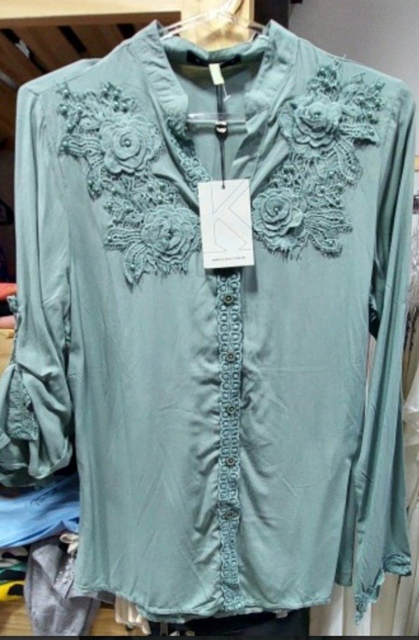 C amisa realizada en fibrana importada con bordados, apliques y perlas, mangas ajustables