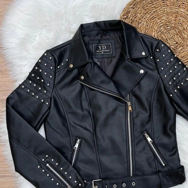 Camperas YD importadas de cuero ecológico con detalle de tachas y cierres en las mangas también cinto .talles disponibles del S al Xxl