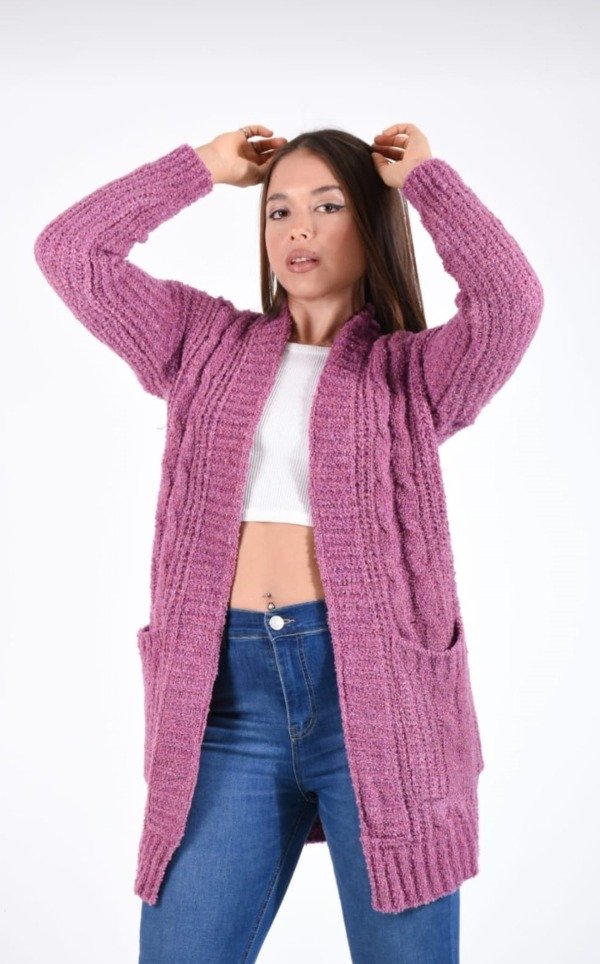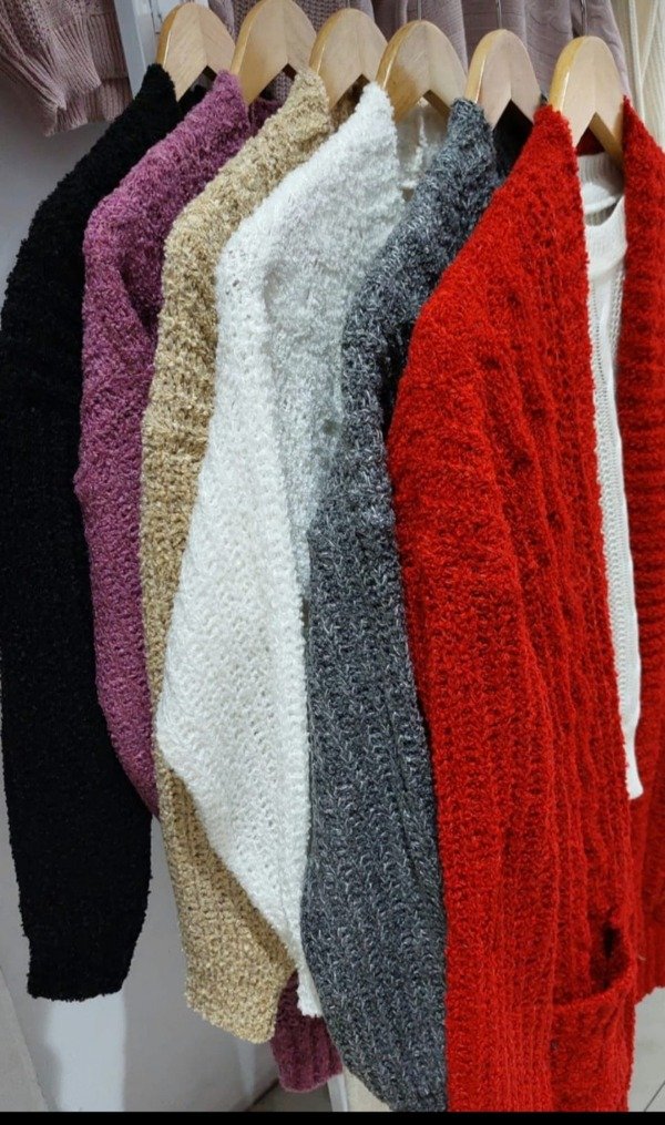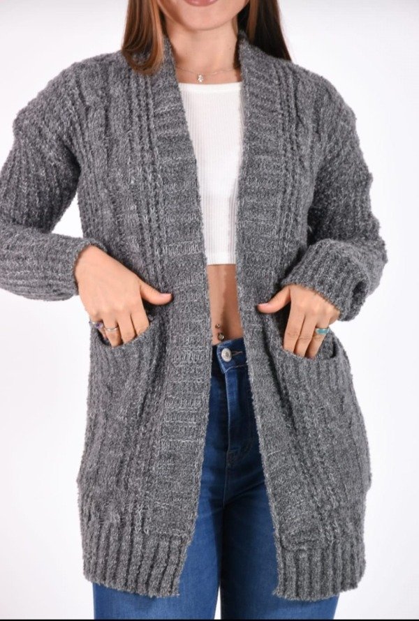 Cárdigan de lana grueso con bolsillos tipo saco.Unico talle Abarca varios talles y también colores .