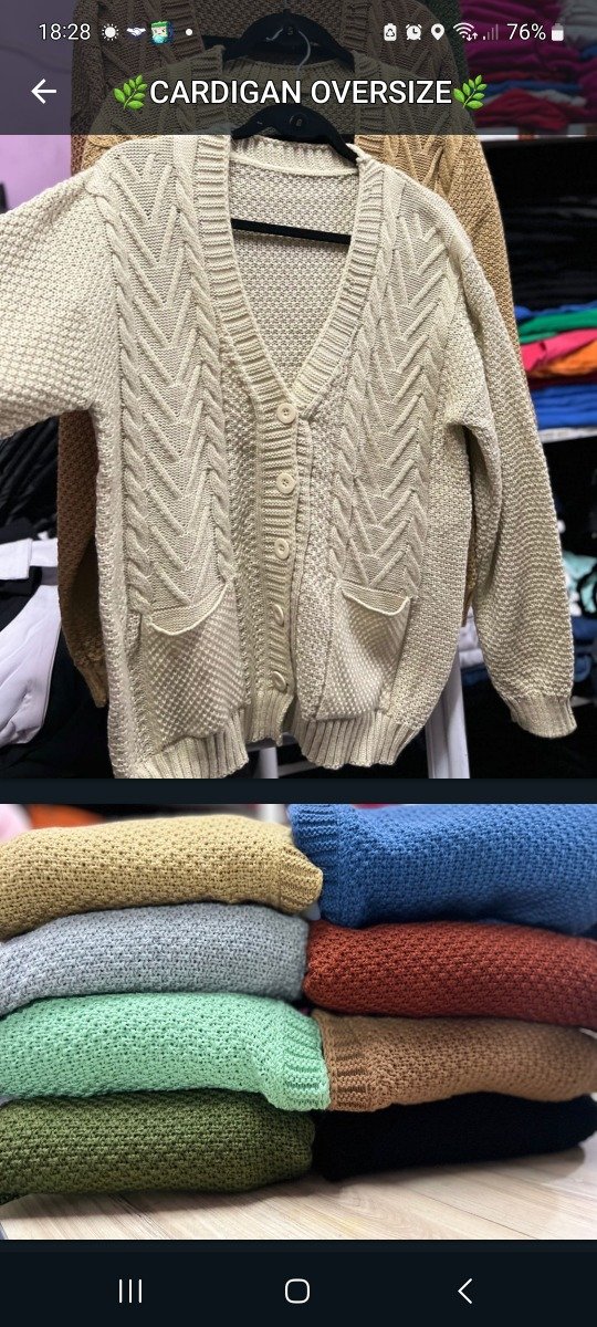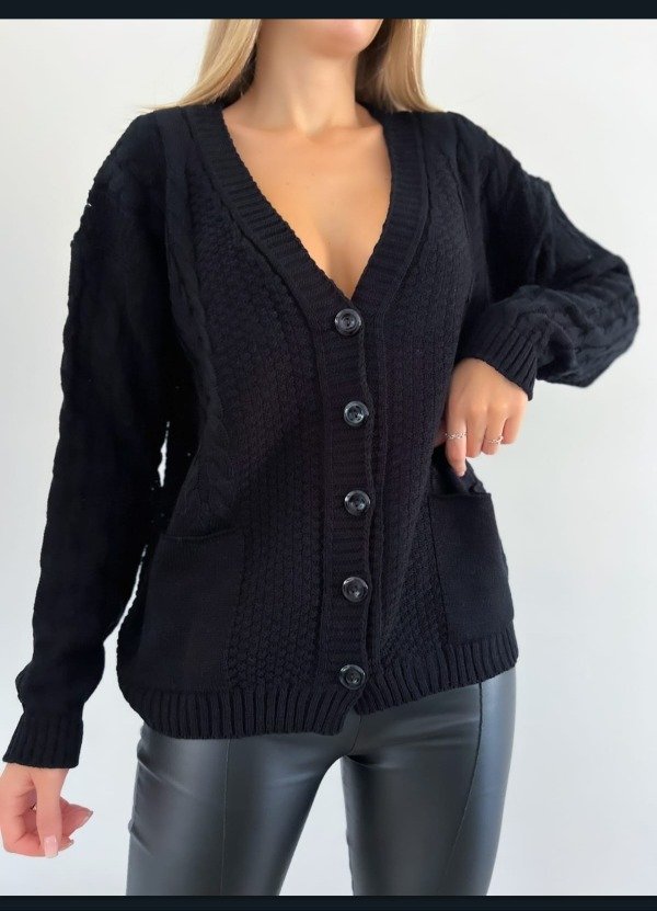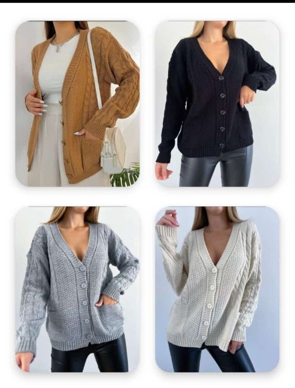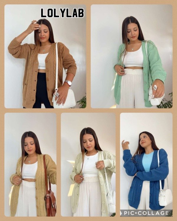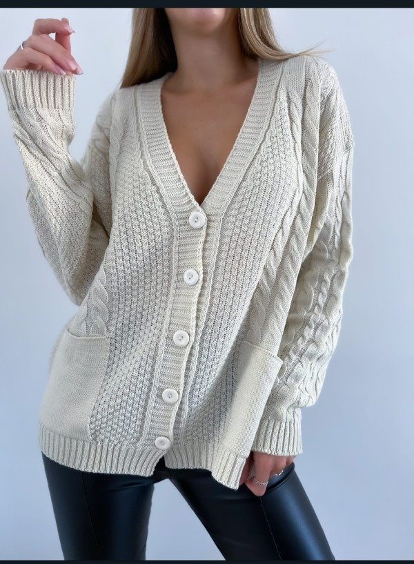Cardigan de lana abotonado oversize largo con bolsillos, varios colores .