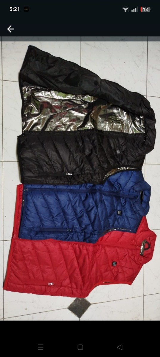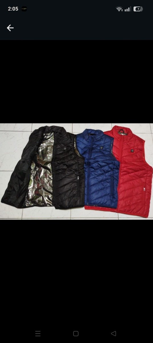 Chaleco con sistema de calefacción,por medio de batería recargable estilo celular .(No incluye) Talles del si al 3 xL .tres niveles de calor.tres colores .
