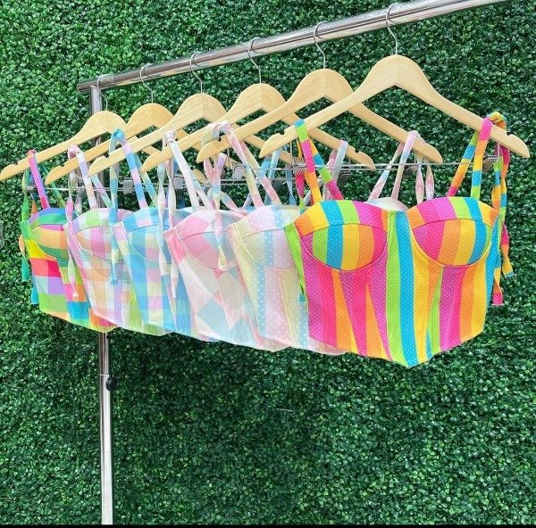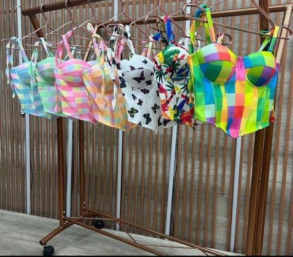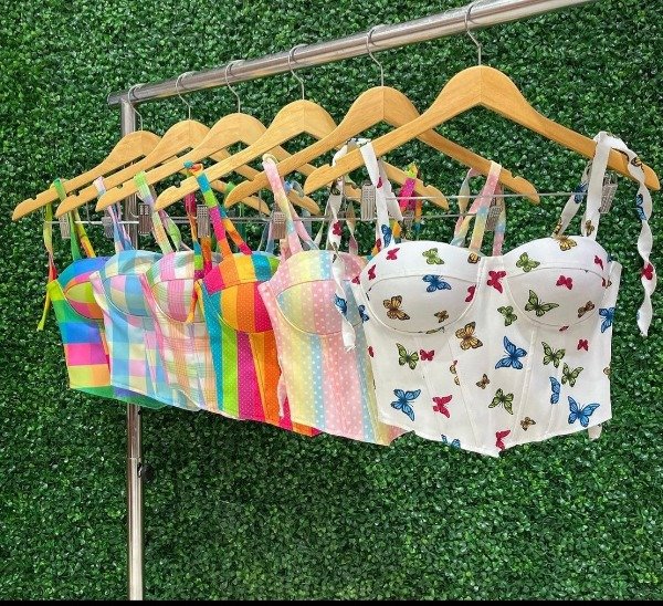 Corset estampados, se atan en los hombros dan bastante talla por ser talles únicos .por lo menos un 95