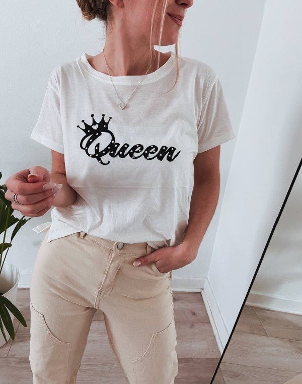 Remera algodón con aplique.talle único abarca bien hasta un 3,4