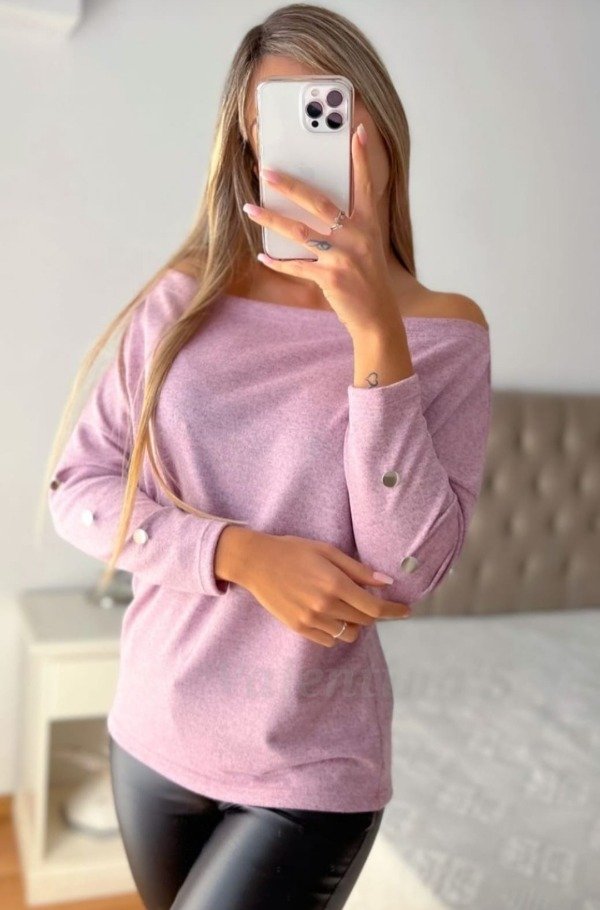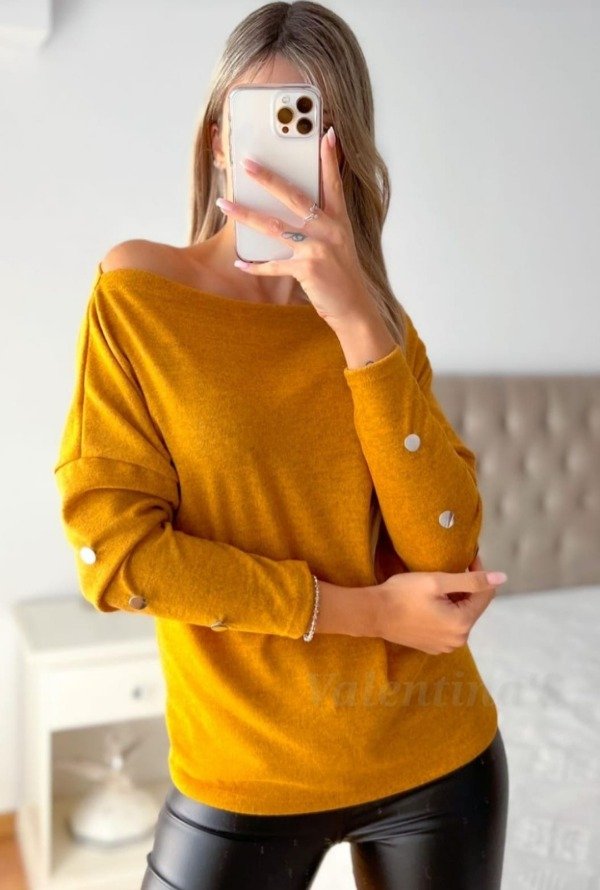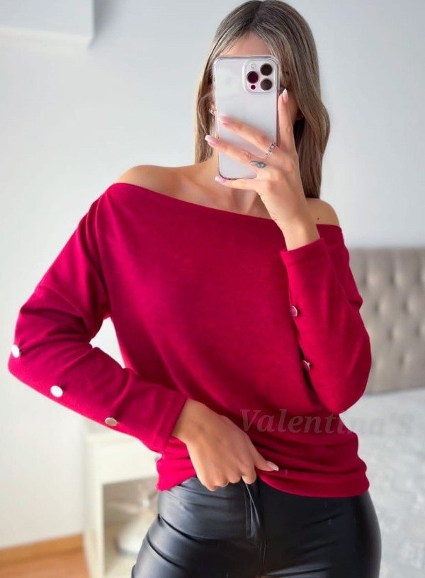 Sweater cuello bote con detalle en las mangas de botones color metal disponibles en los colores de las fotos talle único abarca hasta un T3,4