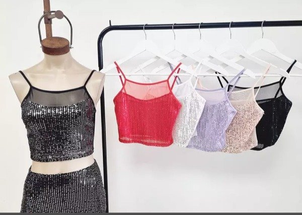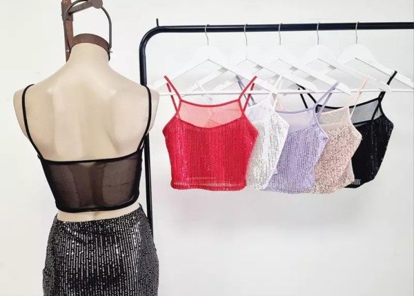 Top lentejuelas con tul ( sin mangas) espalda tul .talle único .es un S.M