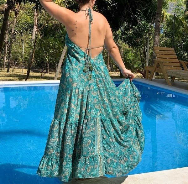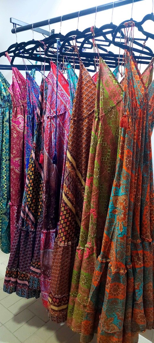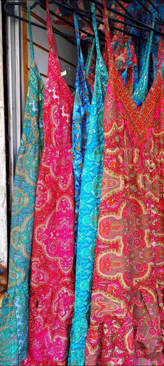 Vestidos de Seda con cordón regulable en hombros y espalda, varios modelos y colores talle único abarca bien hasta un 5 ya que se adapta con los cordones .