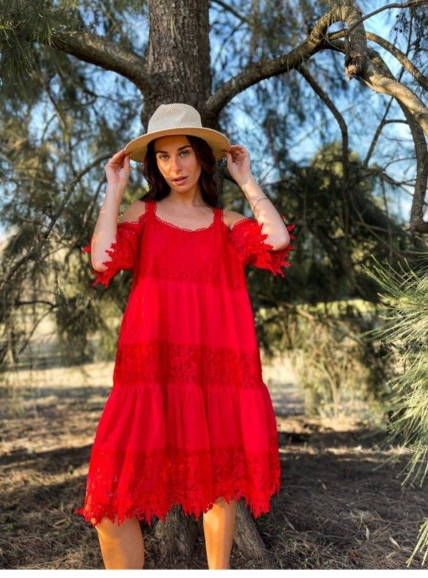 Vestidos totalmente forrados en Encaje y bretel hombro descubierto, importados talles LXl