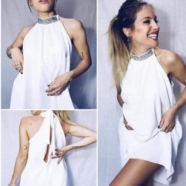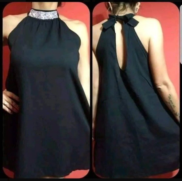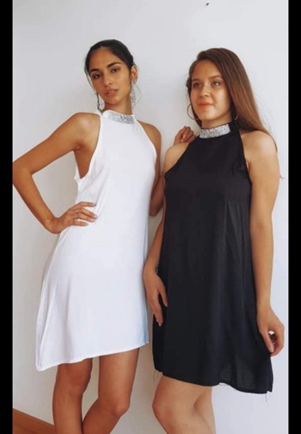 Vestidos de fibrana cuello Mao con strass y lazo para ajustar talles del 1 al 5 colores negro y blanco