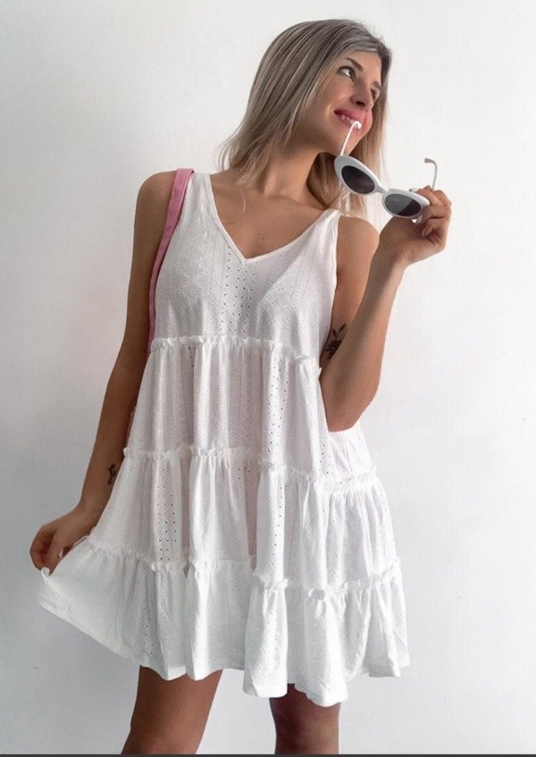 Vestido en Broderie importado de exele te calidad .cuello V . Talles S,M y L XL acampando.