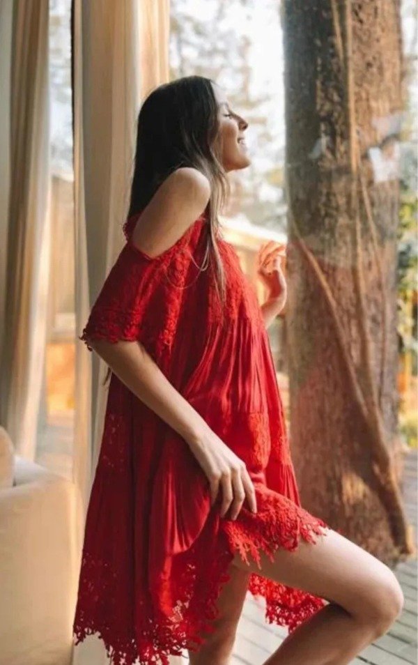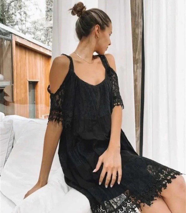 Vestido bretel encaje ,y fibrana todo forrado .talle soy lxl